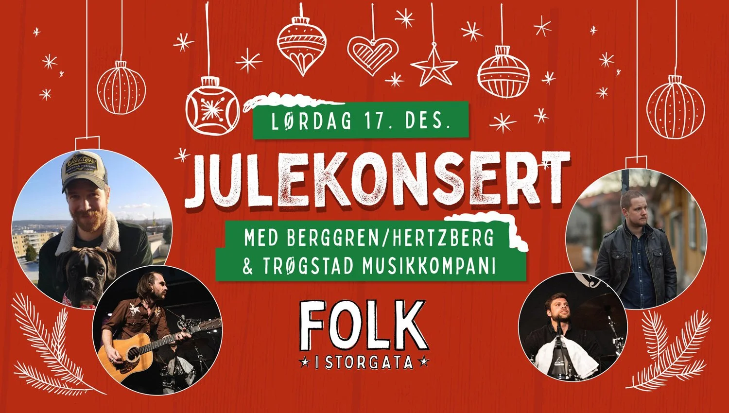 Vi inviterer til folkets jul! Klart jula må spilles inn i Storgata også. I år faller ansvaret på den sagnomsuste supergruppa Berggren/Hertzberg & Trøgstad Musikkompani. Det går gjetord om gamle juleslagere kledd opp i køntristasen og pønka varianter av staselige salmer.