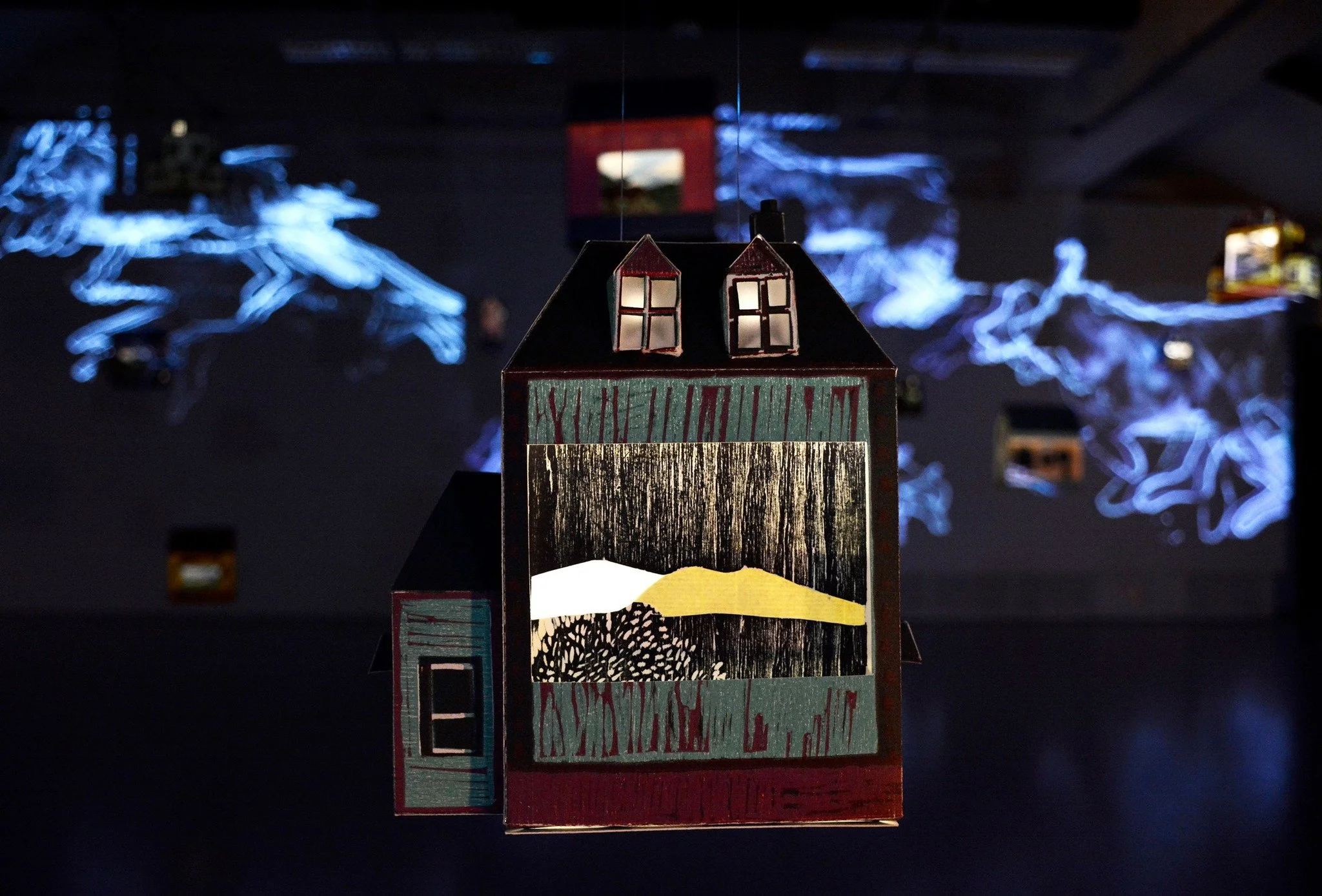 Utstillingen inviterer publikum inn til en stemningsfull scene, der lysende papirhus svever rundt i rommet. Deres varme glød samhandler med en serie animasjoner som projiseres på veggene lik et skyggespill av symbolske skikkelser. Den mystiske stemmingen kunstneren skaper, blir ytterligere forsterket av et komplementerende lydlandskap av den meksikanske komponisten Arturo Morfín. Resultatet blir en enhetlig scenografi som knytter sammen utstillingens ulike narrativer.