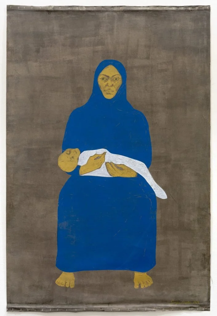 Bildet: Sonja Krohn. Gaza Madonna, 2019. Tresnitt på lerret.