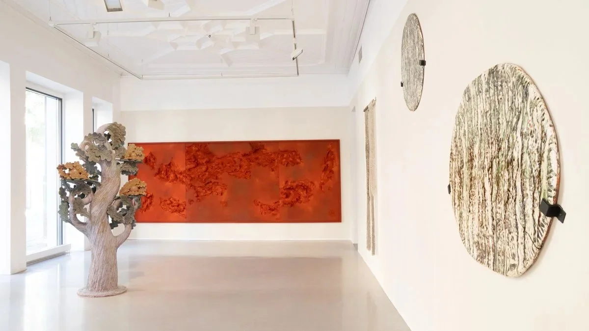 The exhibition’s rich tapestry of works—from photography to ceramic and glass reliefs, from intricate weavings to a sculpted ceramic tree, from paper in deliberate decay to pigment-painted concrete, horsehair, and textiles—lets the rhythm of autumn seep into every form, color, and texture. Together, they evoke a gentle meditation on how we are entwined with the world we seek to understand, interpret, and transform. Shared among them is the recognition that nature does not merely surround us, but flows through us and shapes us. It is both a source of vulnerability and possibility, both necessity and inspiration. Autumn reminds us that change is inevitable – and that art, in this transitional space, can open a room for reflection, perception, and new beginnings.