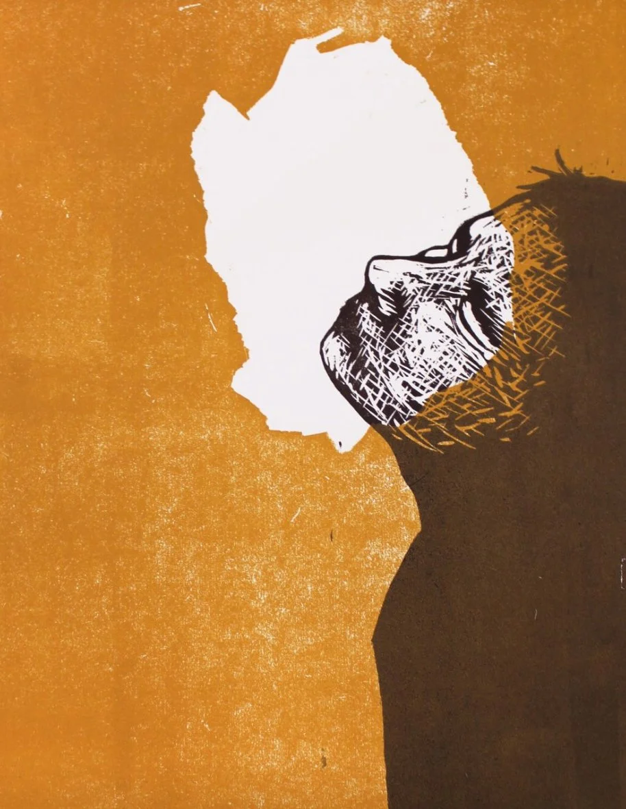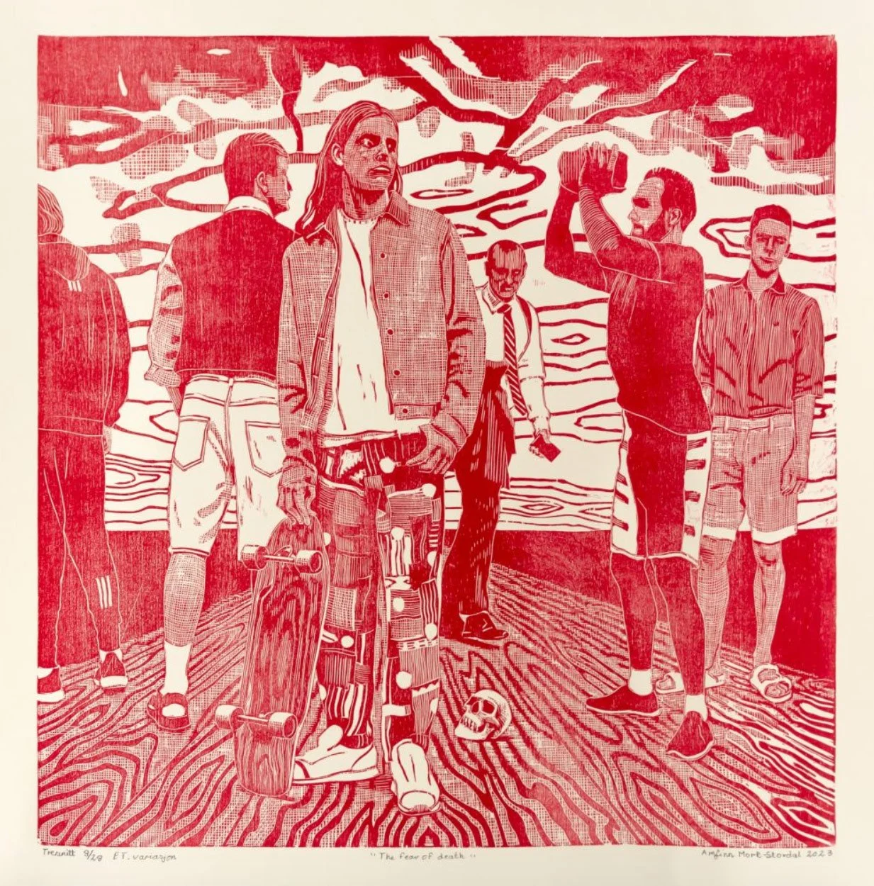 Nina Edling – Av och på. Tresnitt, 58 x 62 cm
