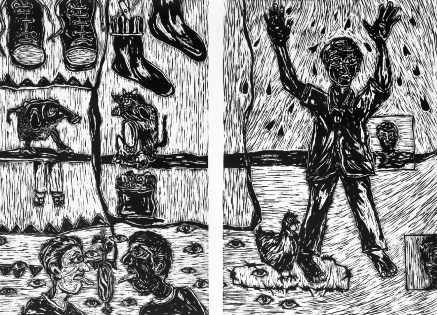 Arbeidene hans inneholder ofte både menneskelige karakterer og dyr, noen ganger i hybrisert form for å skape unike og uventede former. Denne blandingen gjenspeiler en interesse for å utforske samspillet mellom virkelighet, fiksjon, satire og drømmelignende tilstander.