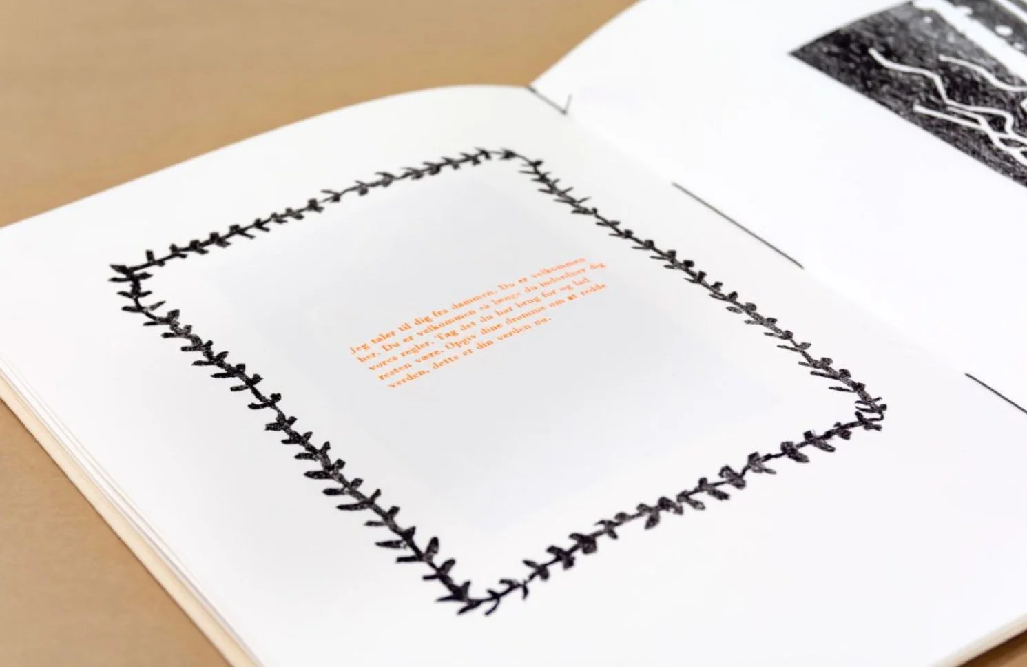 Jensen stiller ut en bok trykket med litografi, boktrykk og en monolog fra fisken damkaruss.