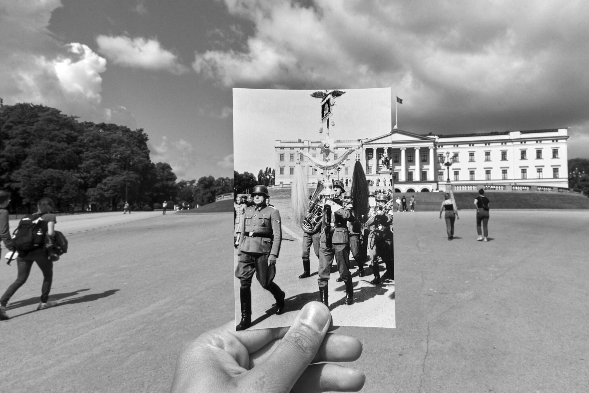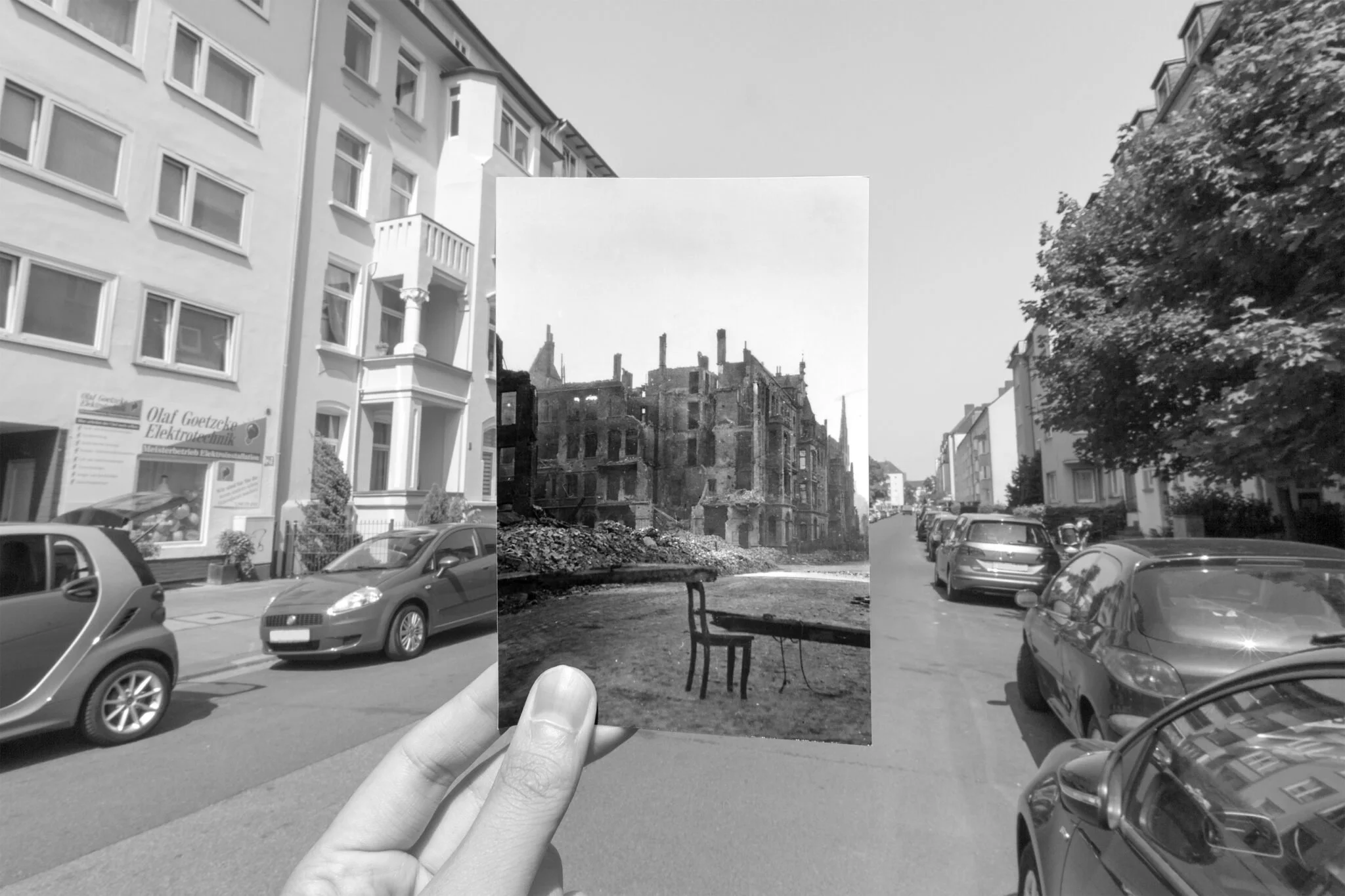 Med over 80 fotografier dokumenterer og sammenstiller Alireza Husseini historiske bilder fra andre verdenskrig med samtidens bylandskap. Utstillingen synliggjør hvordan spor etter krig, fascisme og Holocaust fortsatt er til stede i det europeiske landskapet.